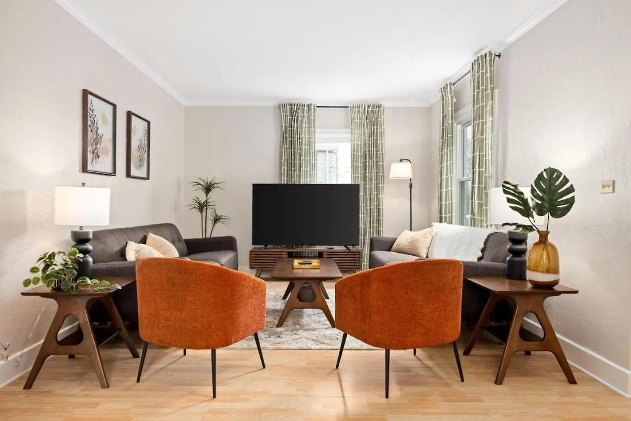 La casa de vacaciones goza de una ubicación a 10 minutos en coche de Peoria Zoo y a 2 km del Jardín botánico conmemorativo de George L. Luthy. Esta villa se encuentra a 4 km de lugares de importancia histórica, como Dan Fogelberg Memorial. La Villa Cozy Mid Century Oasis With 2 King Beds ofrece fácil acceso a maravillas naturales como Giant Oak Park (4,1 km) y Tower Park (1 km).